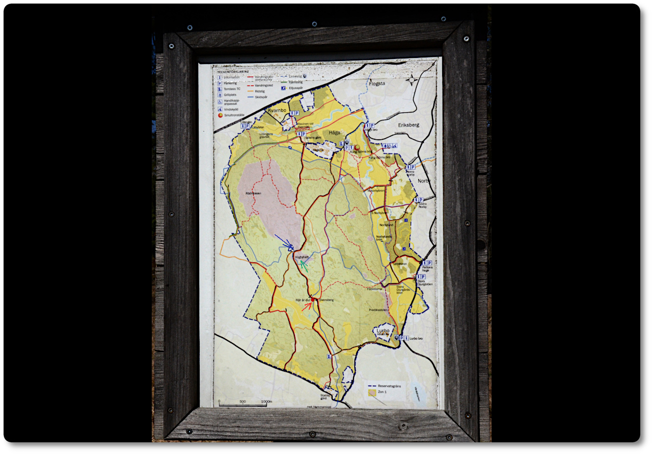 April, 2024. Informationsskylten om naturreservatet Hågadalen Nåsten vid Lurbo. I det här bildspelet ska vi leta efter bombmurklor, som ska finnas i närheten av Högby hatt.
