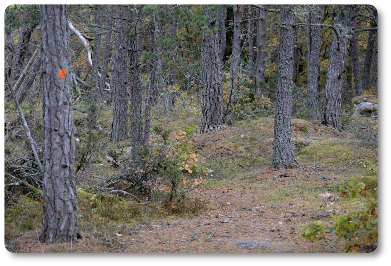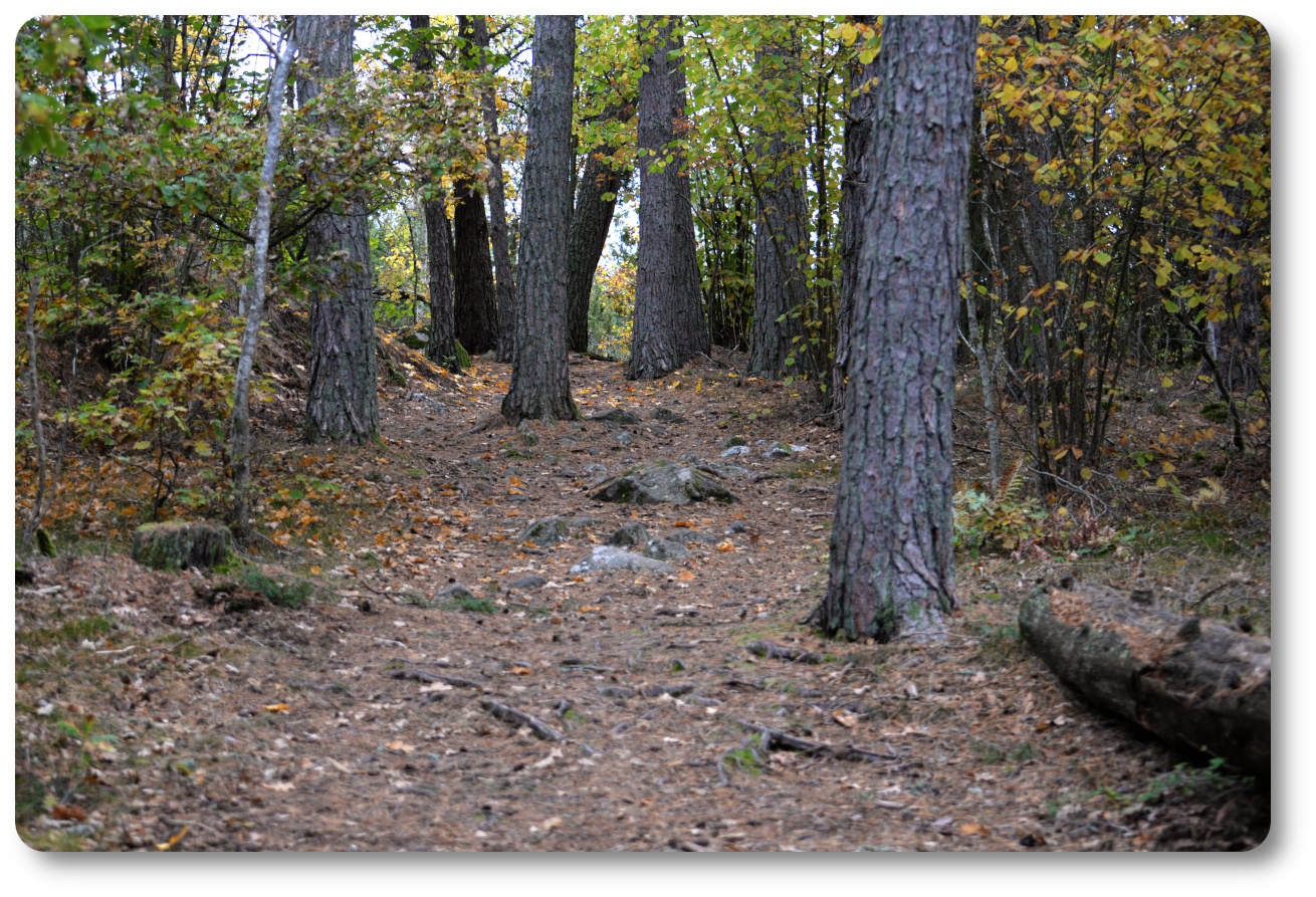 Oktober, 2925. Stigen upp mot Kvarnbergets topp går i en ganska brant uppförsbacke och genom en gles tallskog.