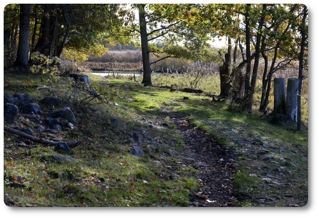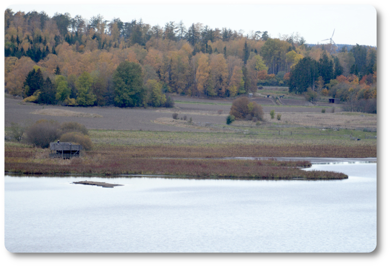 Oktober, 2025. På tillbakavägen kan man gå ut på denna upphöjning, som nog är omgiven av vatten på våren. Notera att tillträdesförbud på delar av strandängarna råder mellan den 1 april och den 15 augusti.
