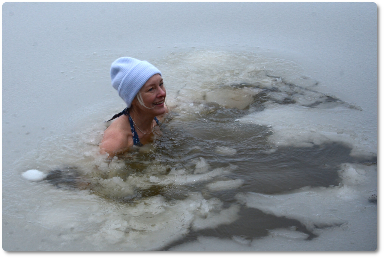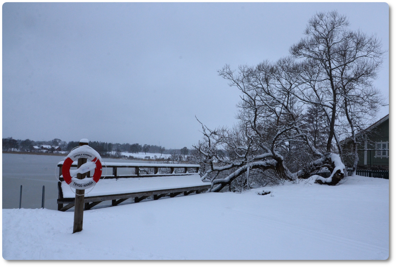 Mars, 2023. Ja, det gjorde det ju och det finns alltså en del vinterbadare, som trotsar vädrets makter och utnyttjar badbryggan vid Wik även på vintern. Bilden publiceras här med tillstånd från baderskan.