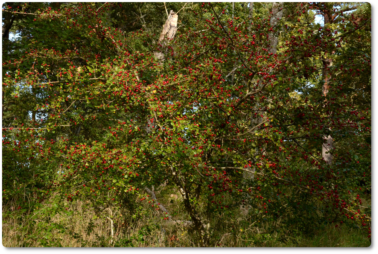 Oktober, 2023 Hagtornbuskar, som inte ska förväxlas med havtornsbuskar, är mycket vanliga i Wiks Naturpark. På hösten lyser de ilröda bären när solen ligger på.
