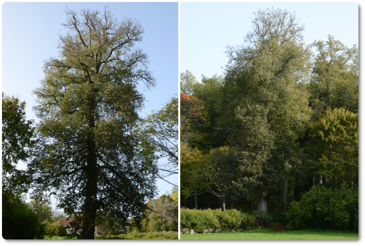 Oktober, 2023. Vid vägen mot skolbyggnaden växer en mycket stor poppel, som har fotograferats från två håll.