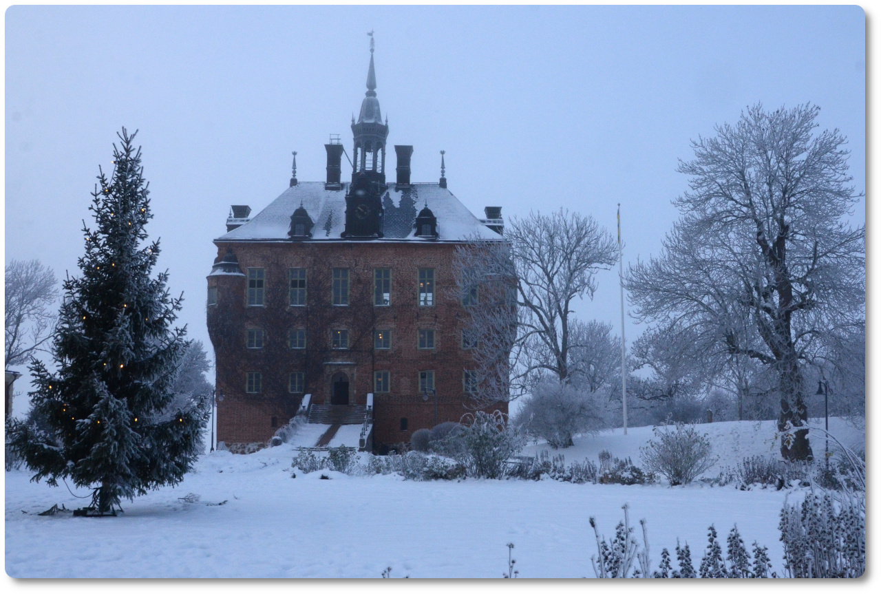 December, 2023. I år (2023) kom snön redan i slutet av november och nu ligger Wiks slotts- och naturpark inbäddade i ett vitt snötäcke.