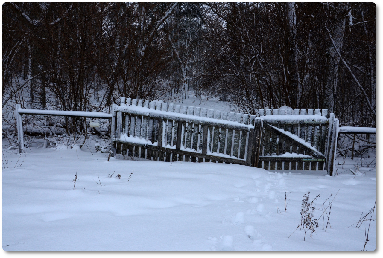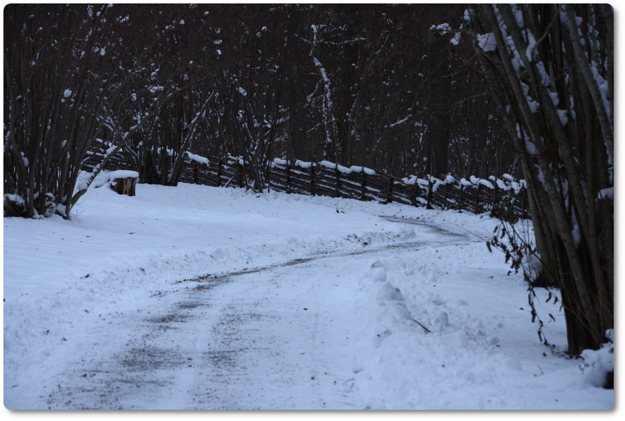 December, 2023. Grinden till Slåtterängen. De större stigarna plogas och sandas på vintern.