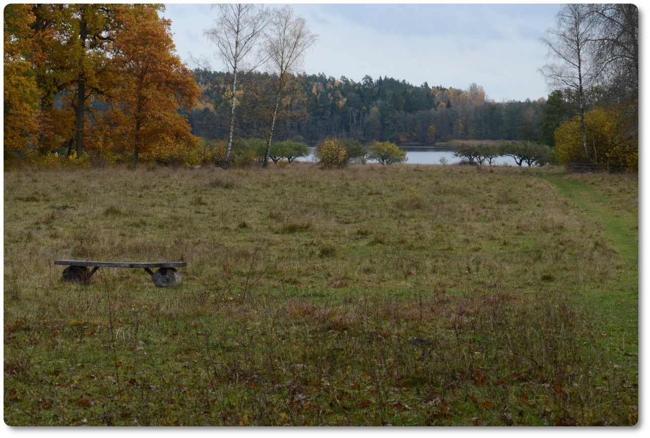 Oktober, 2023. På många ställen i parken har man placerat ut små låga bänkar, där man kan sitta och vila eller bara njuta av naturen.