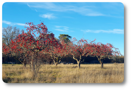 November, 2024. Mycket frukt sitter fortfarande kvar på äppelträden i Äppellunden.
